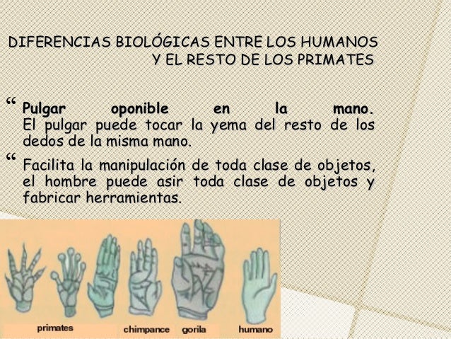 Como sabemos la especie humana es el resultado de un largo proceso evolutivo de adaptación al medio natural. A lo largo de la prehistoria, algunos primates sufrieron cambios físicos que les fueron diferenciando del resto al desarrollar nuevos rasgos. Estas transformaciones han condicionado algunas capacidades de los seres humanos que no tiene otros primates. Entre las más importantes destacamos: